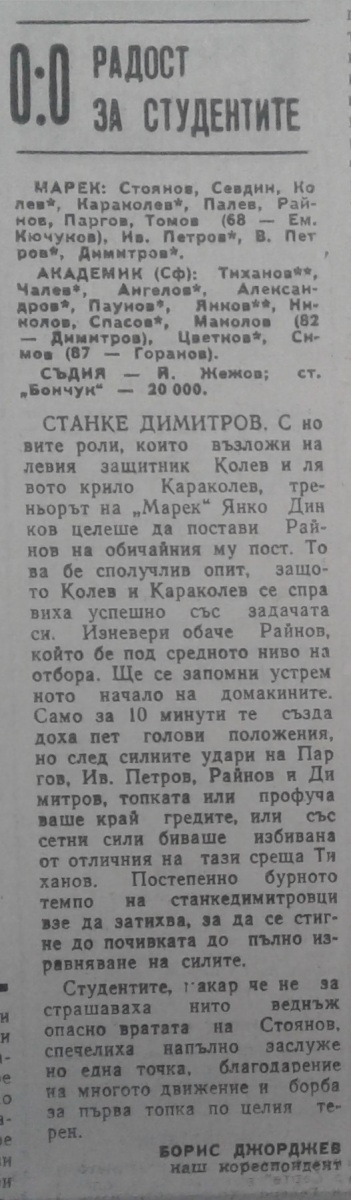 «Марек» Станке-Димитров - «Академик» София - 0:0
