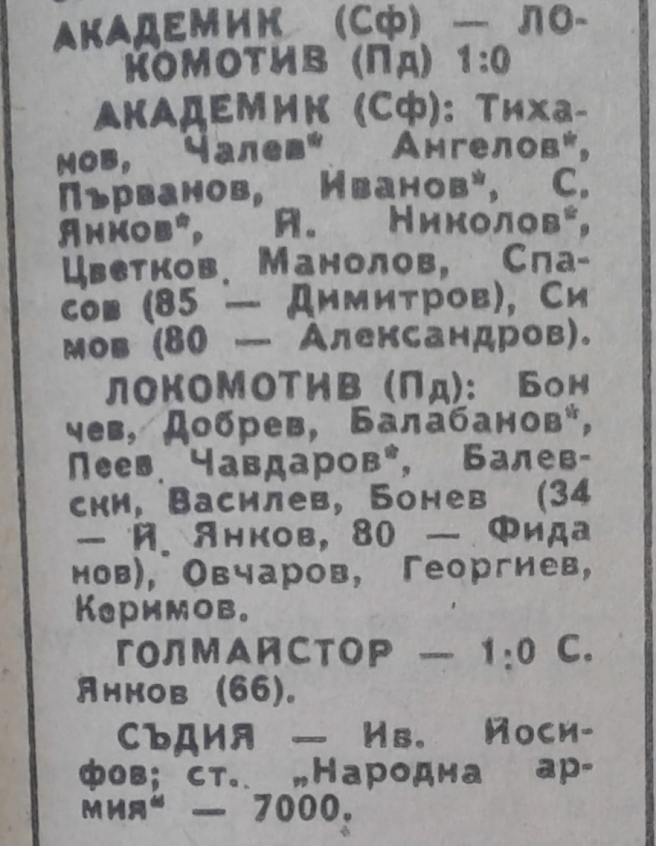 «Академик» София - «Локомотив» Пловдив - 1:0