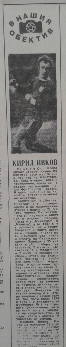 Кирил Ивков (Левски-Спартак) провёл свой 300-й матч в А РФГ.