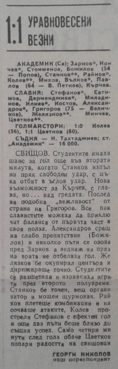 «Академик» Свиштов - «Славия» София - 1:1