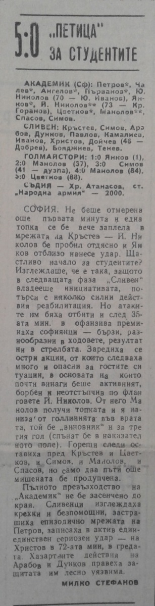 «Академик» София - АФД Сливен - 5:0