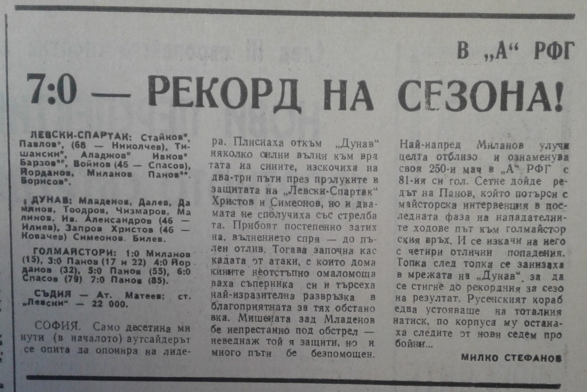 «Левски-Спартак» София - «Дунав» Русе - 7:0
