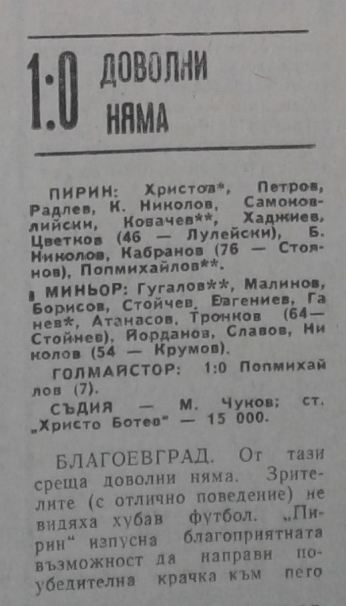 «Пирин» Благоевград - «Минёр» Перник - 1:0
