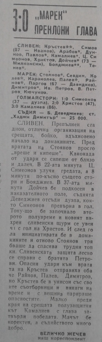 АФД Сливен - «Марек» Станке-Димитров - 3:0