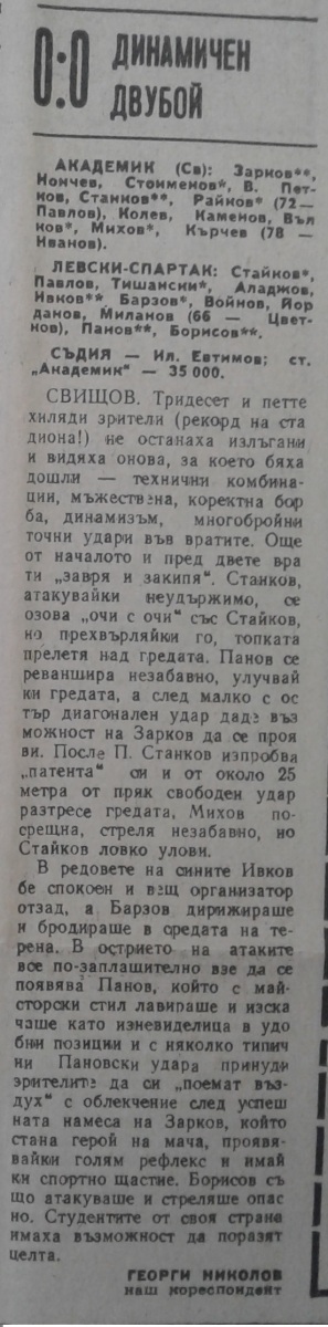 «Академик» Свиштов - «Левски-Спартак» София - 0:0