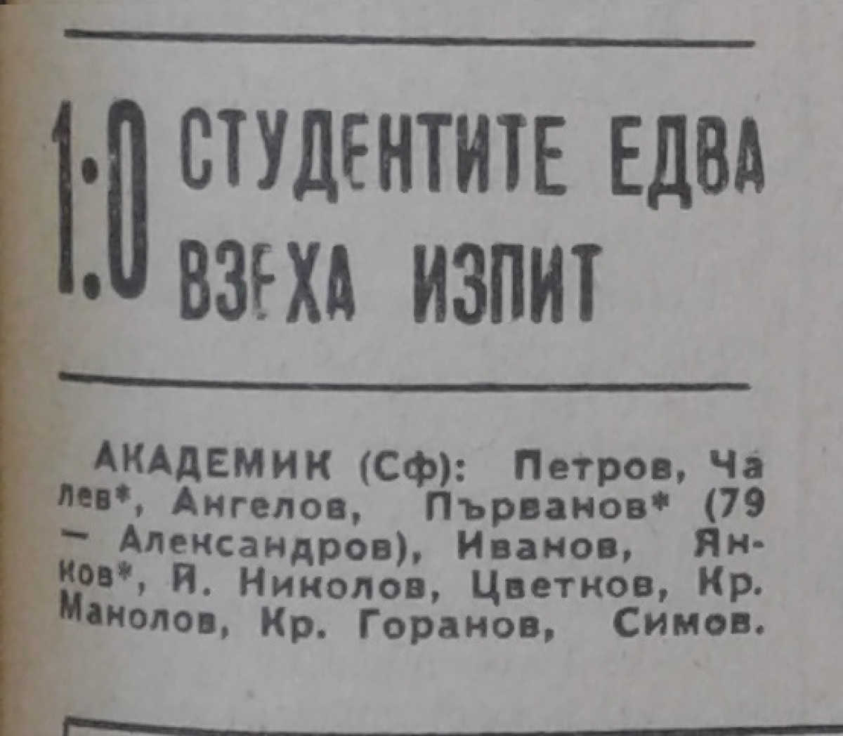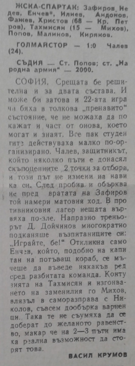 «Академик» София - «ЖСК-Спартак» Варна - 1:0