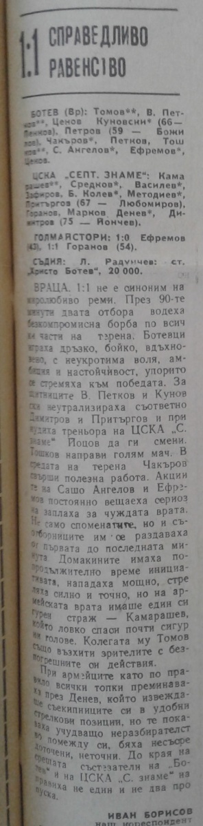 «Ботев» Враца - «ЦСКА Септемврийско Знаме» София - 1:1