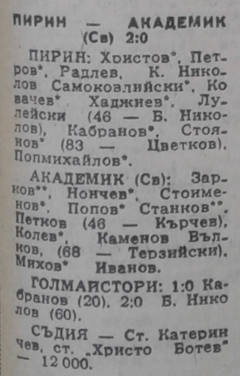 «Пирин» Благоевград - «Академик» Свиштов - 2:0