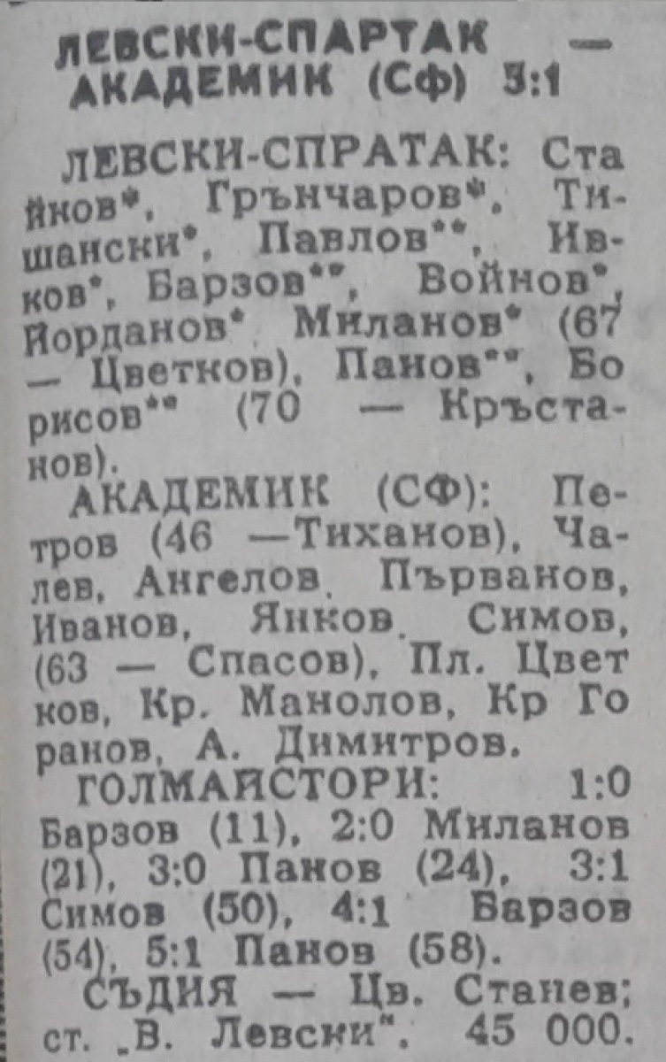«Левски-Спартак» София - «Академик» София - 5:1