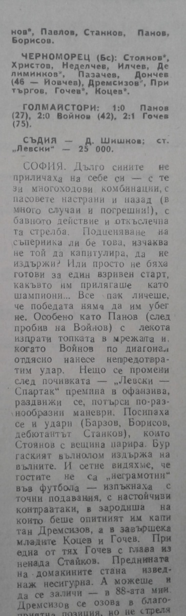 «Левски-Спартак» София - «Черноморец» Бургас - 2:1
