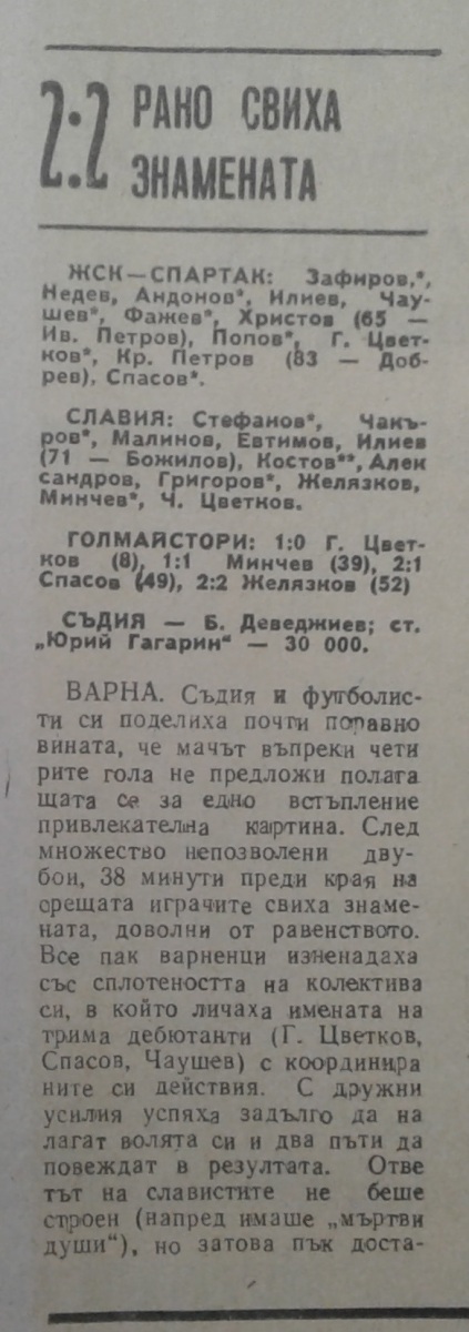 Валентин Чаушев, Георги Цветков и Эмил Спасов дебютировали в состае ЖСК-Спартак Варна) (все из Левски-Спартак София).