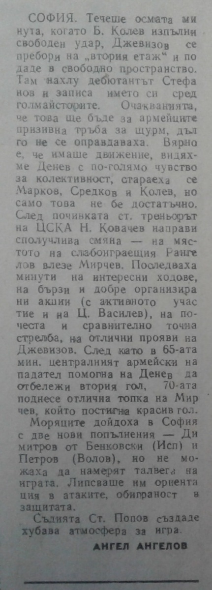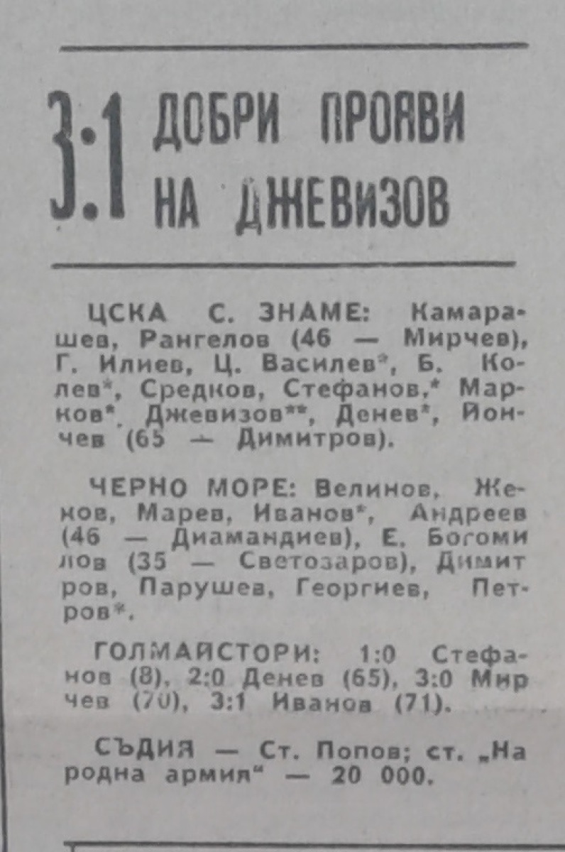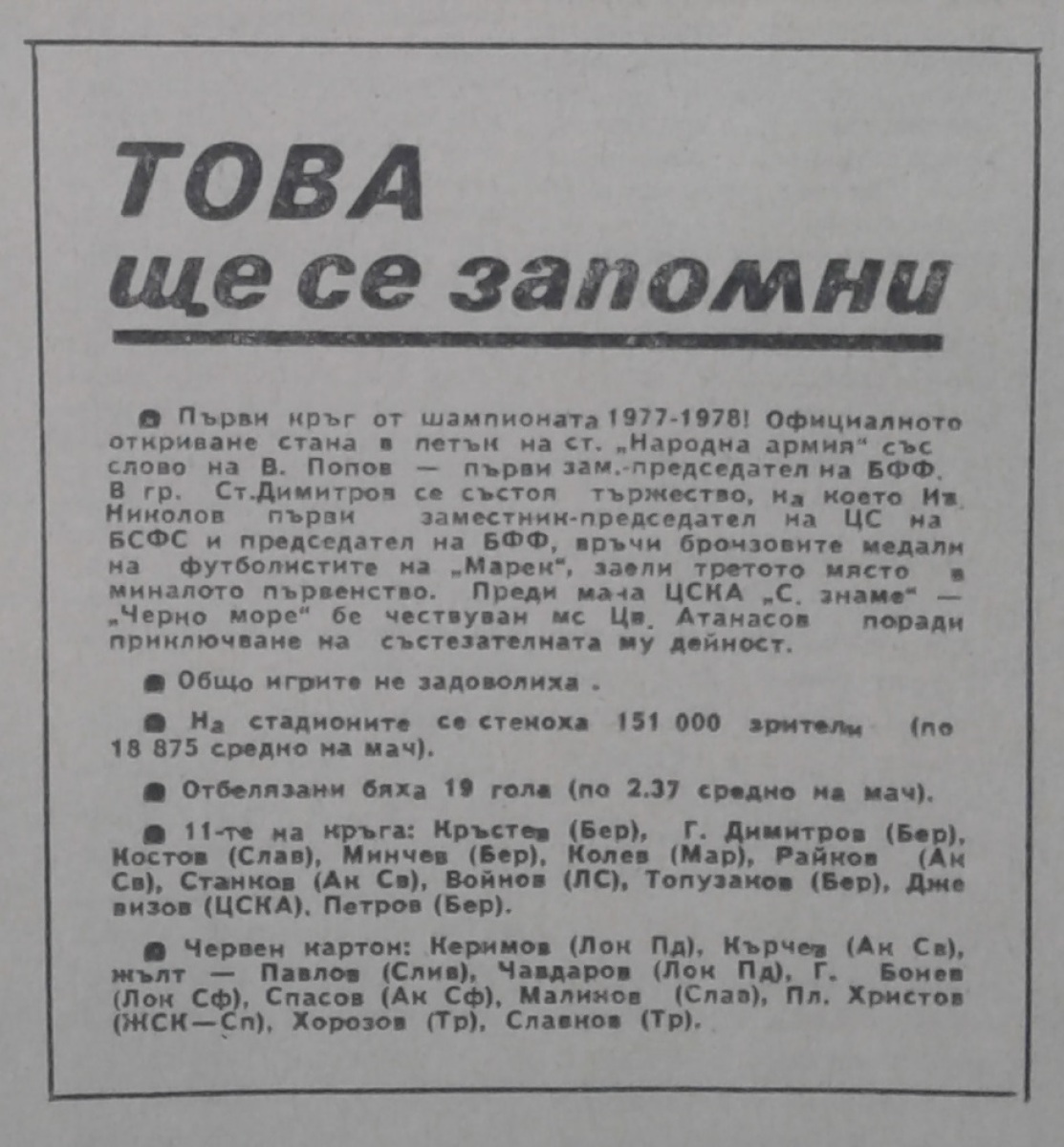 Петар Хр. Петров дебютировал в составе Черно море Варна (из Волов Шумен). Димитар Ник. Димитров дебютировал в составе Черно Море Варна (из Бенковски Исперих). Стефан Ив. Стефанов дебютировал в составе ЦСКА Семтеврийско знаме (из Родопа Смолян.