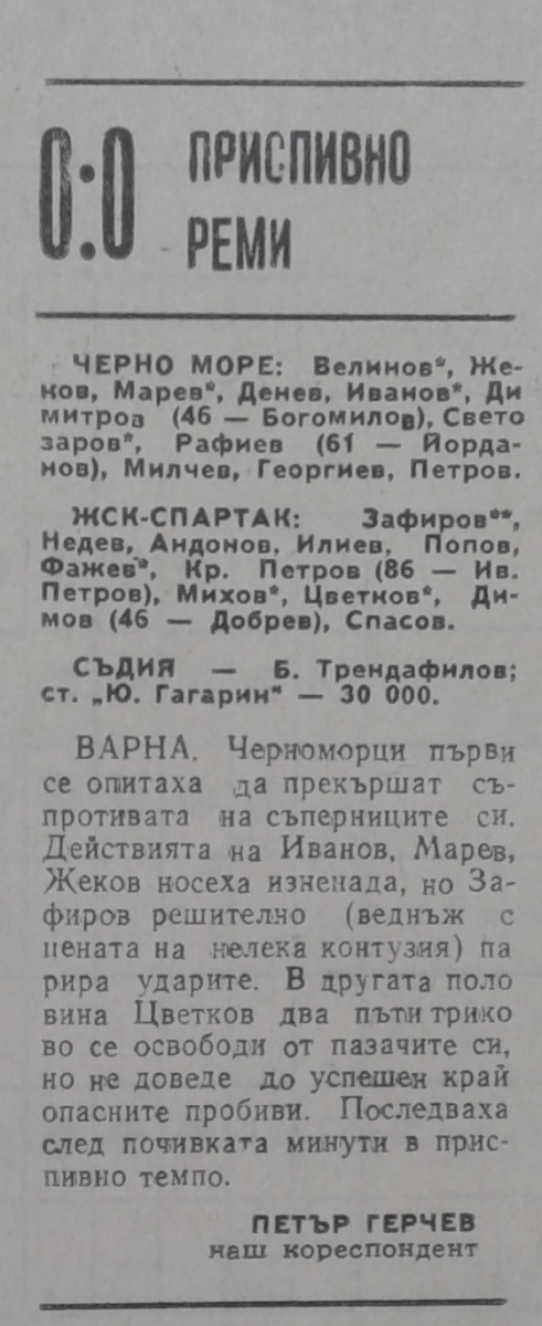 «Черно море» Варна - «ЖСК-Спартак» Варна - 0:0