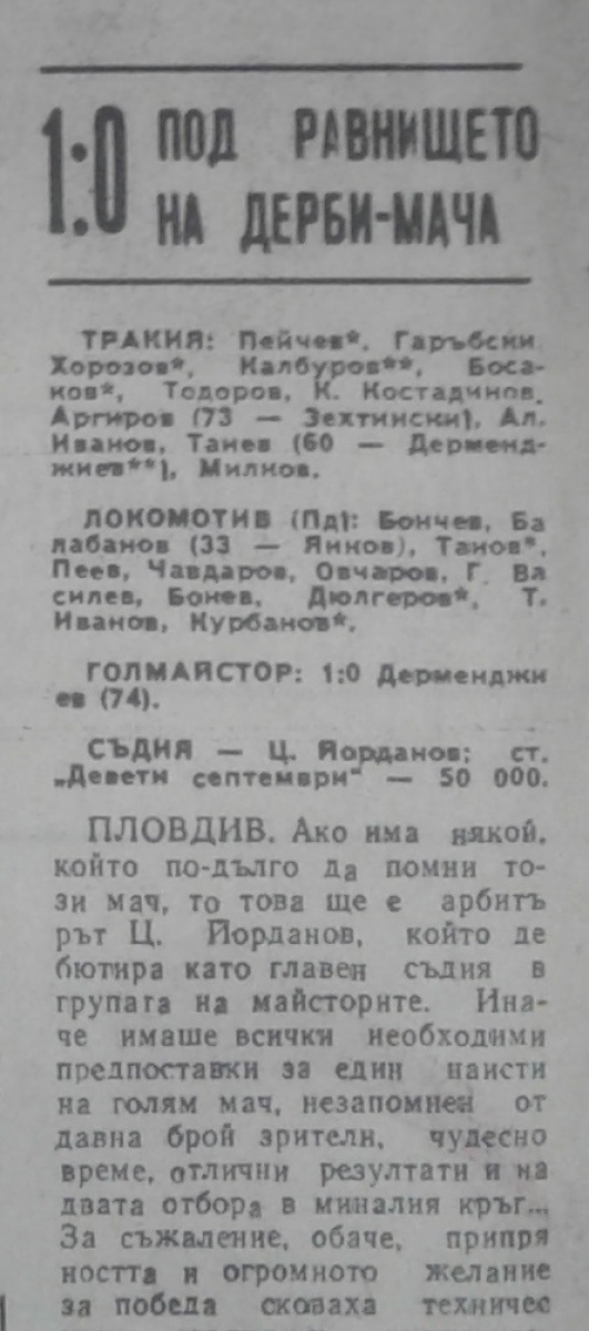 «Тракия» Пловдив - «Локомотив» Пловдив - 1:0