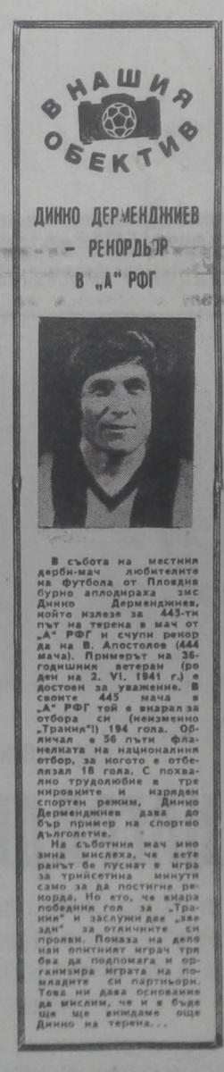 Николай Курбанов (Локомотив Пловдив) провёл свой 100-й матч в А РФГ.
