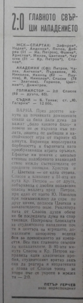 «ЖСК-Спартак» Варна - «Академик» София - 2:0