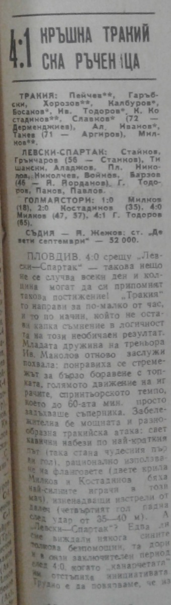 «Тракия» Пловдив - «Левски-Спартак» София - 4:1