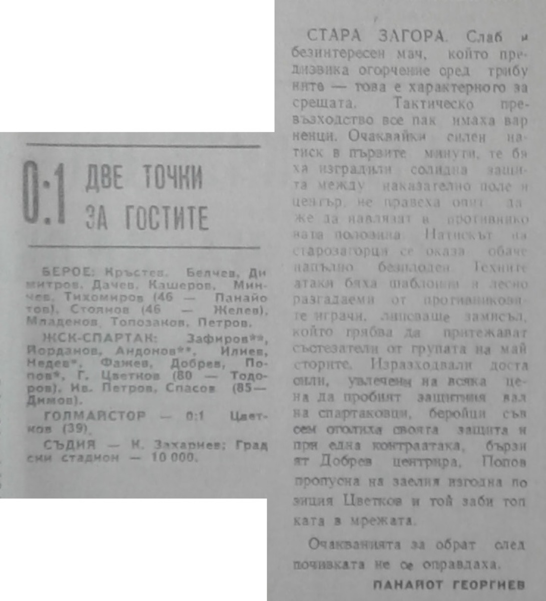 «Берое» Стара-Загора - «ЖСК-Спартак» Варна - 0:1