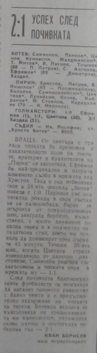 «Ботев» Враца - «Пирин» Благоевград - 2:1
