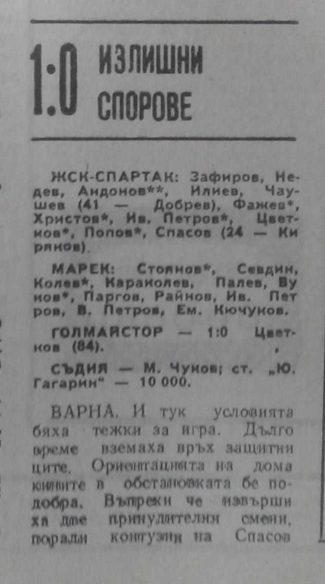 «ЖСК-Спартак» Варна - «Марек» Станке-Димитров - 1:0