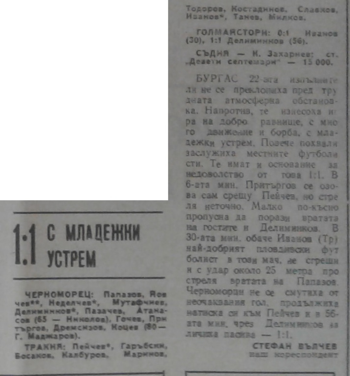 «Черноморец» Бургас - «Тракия» Пловдив - 1:1