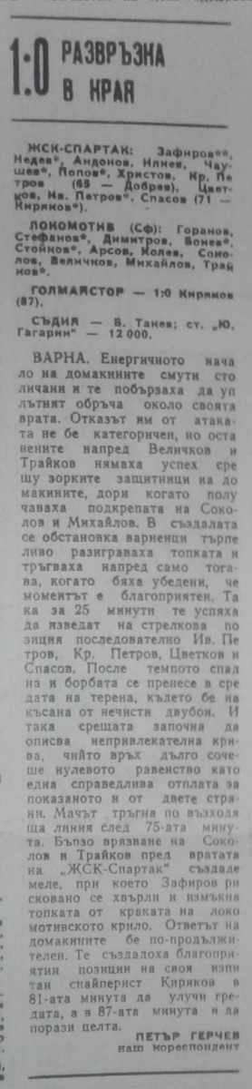 «ЖСК-Спартак» Варна - «Локомотив» София - 1:0