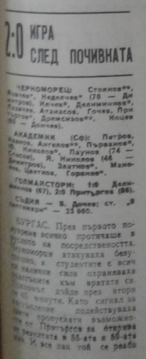 «Черноморец» Бургас - «Академик» София - 2:0