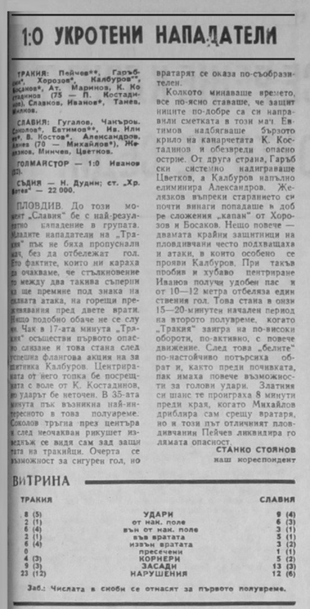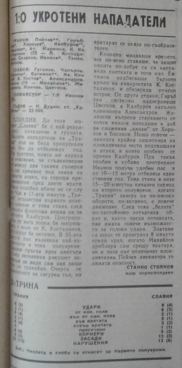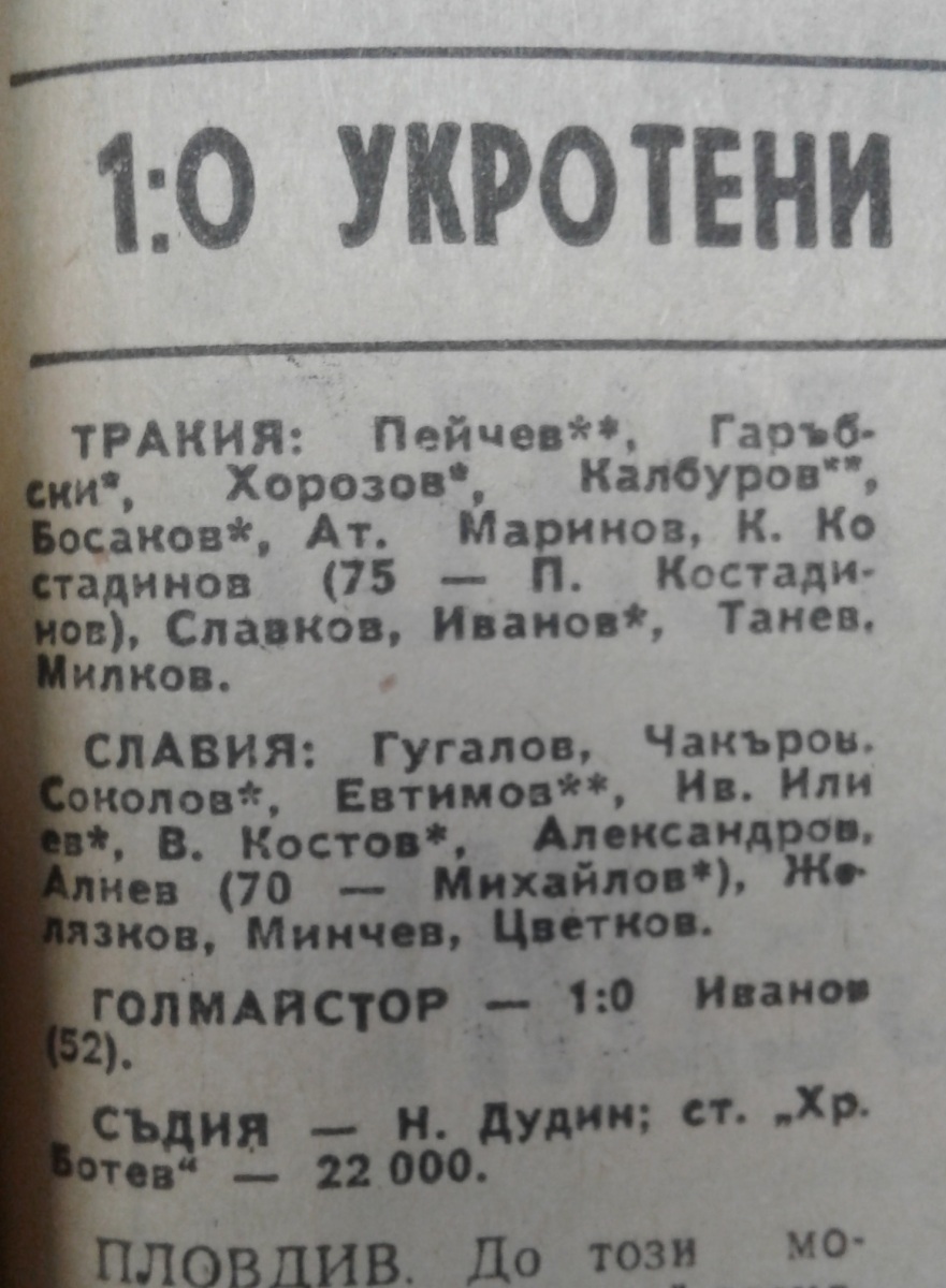 «Тракия» Пловдив - «Славия» София - 1:0