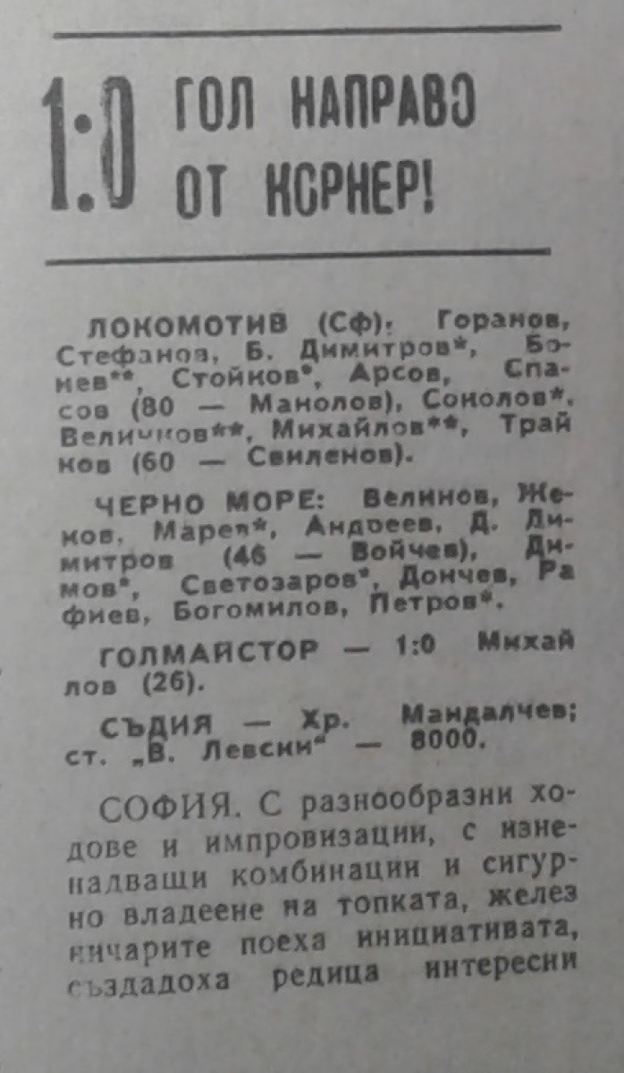 «Локомотив» София - «Черно море» Варна - 1:0