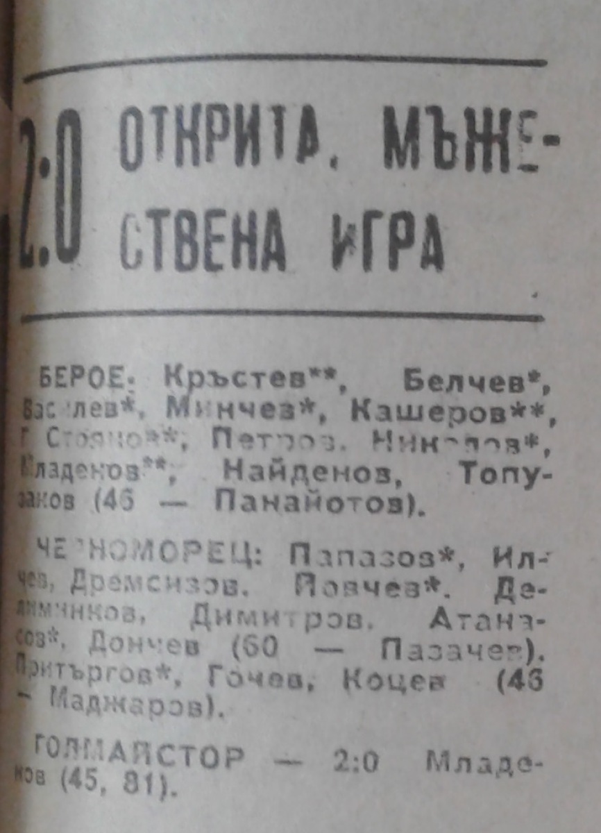 «Берое» Стара-Загора - «Черноморец» Бургас - 2:0