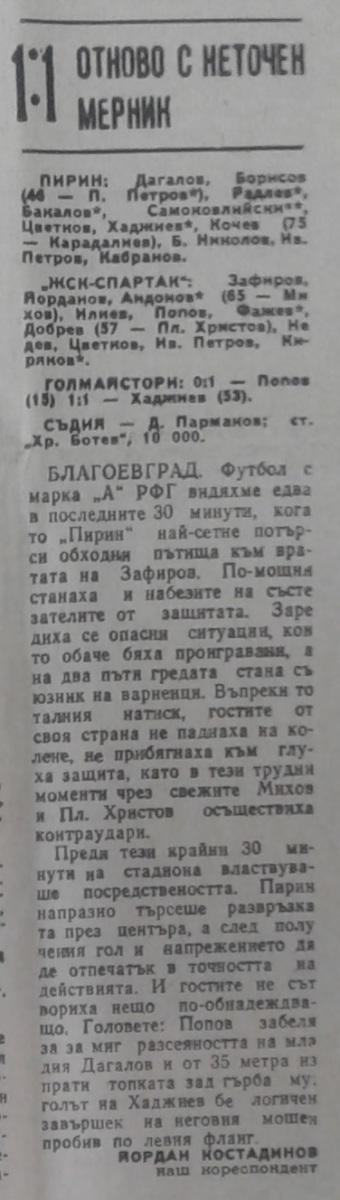 «Пирин» Благоевград - «ЖСК-Спартак» Варна - 1:1