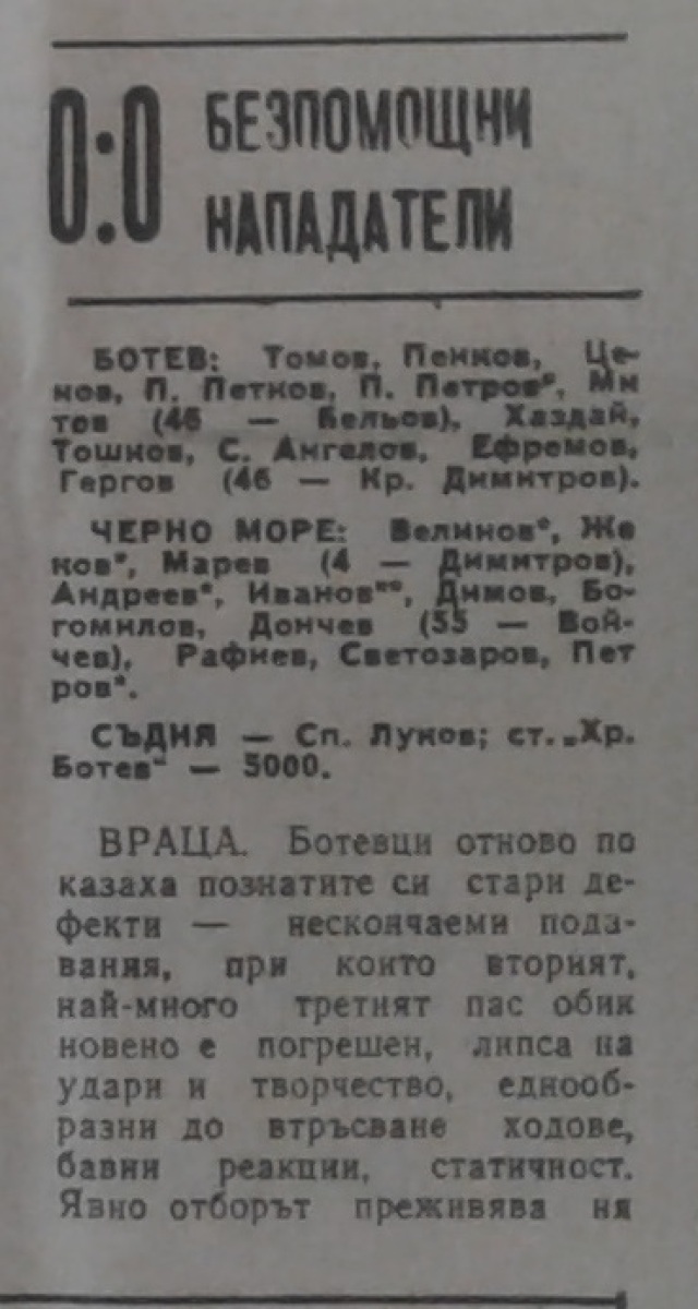 «Ботев» Враца - «Черно море» Варна - 0:0