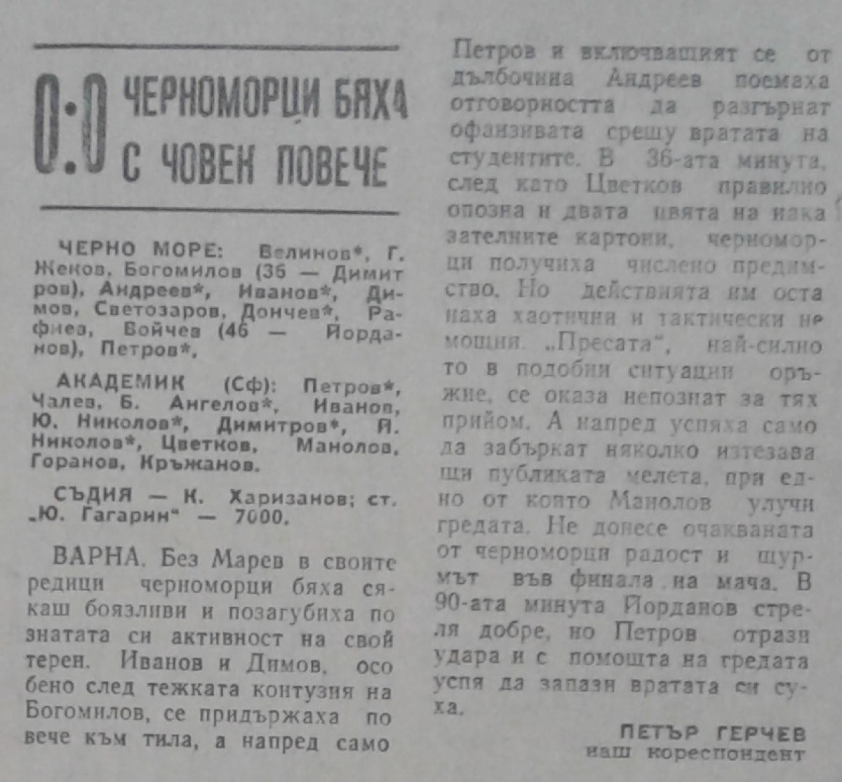«Черно море» Варна - «Академик» София - 0:0