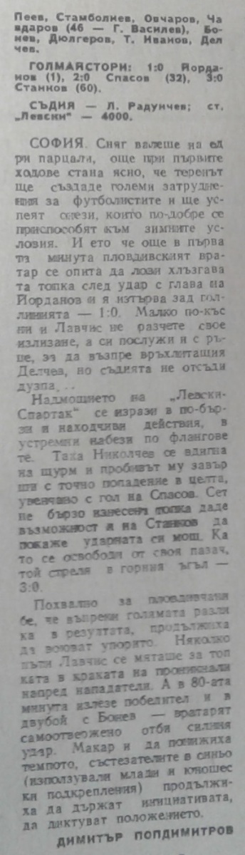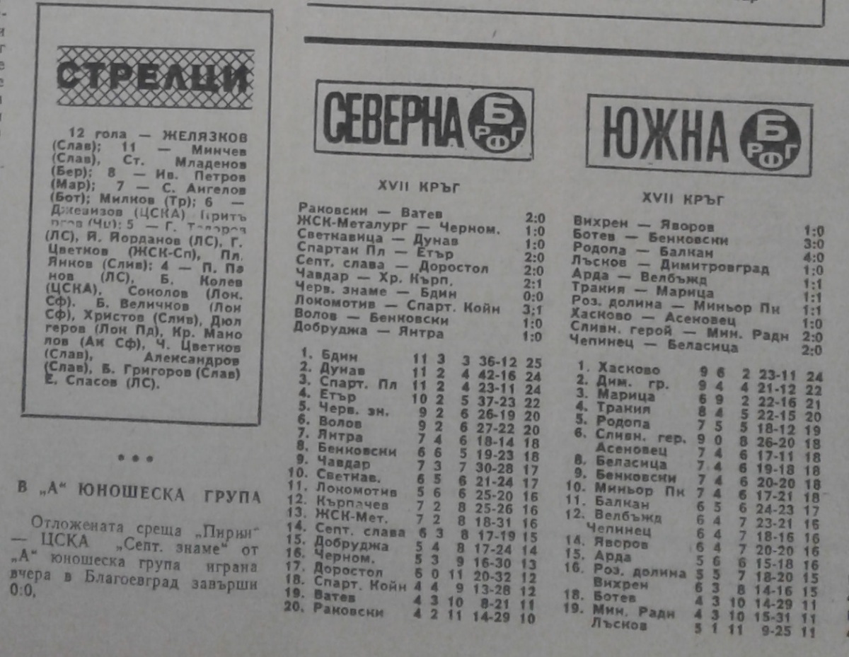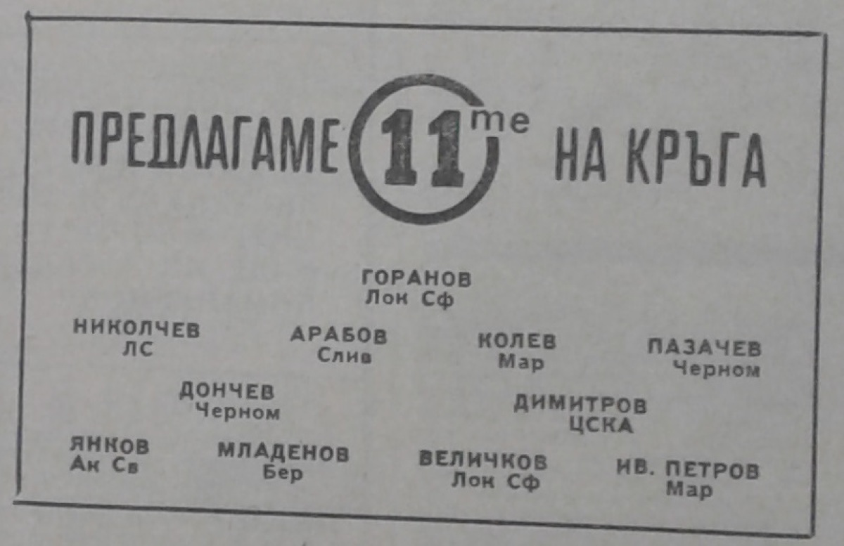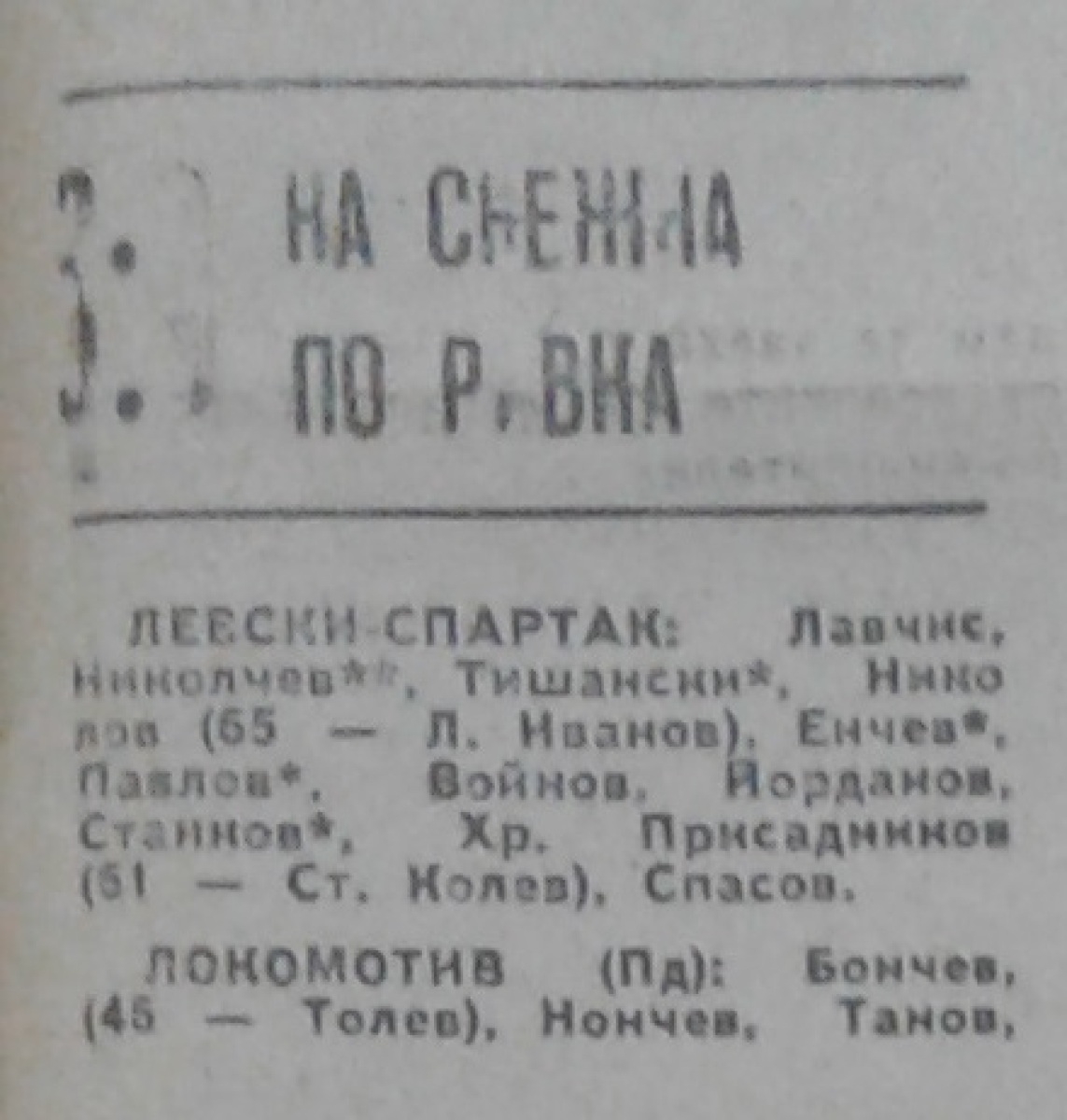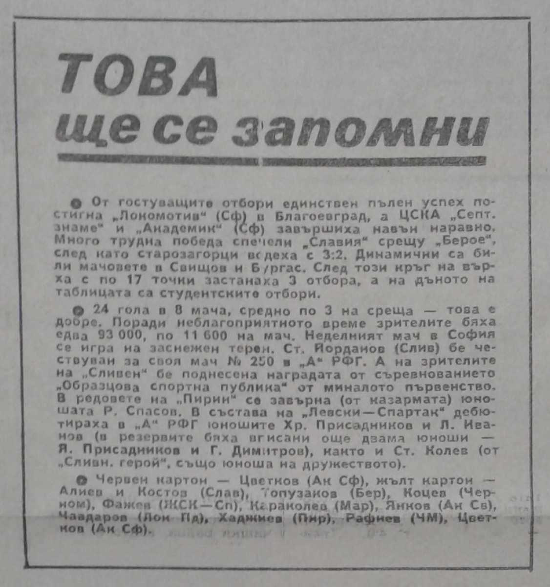 Христо Присадников, Людмил Иванов (из юнош. команды) и Стефан Колев (из Сливински герой) все из Левски-Спартак дебютировали в А РФГ.