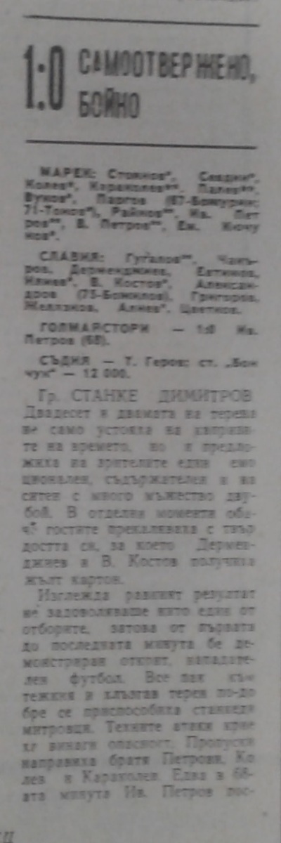«Марек» Станке-Димитров - «Славия» София - 1:0