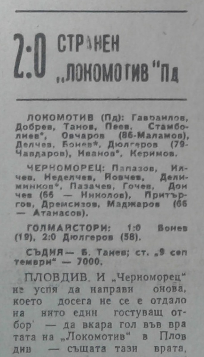 «Локомотив» Пловдив - «Черноморец» Бургас - 2:0