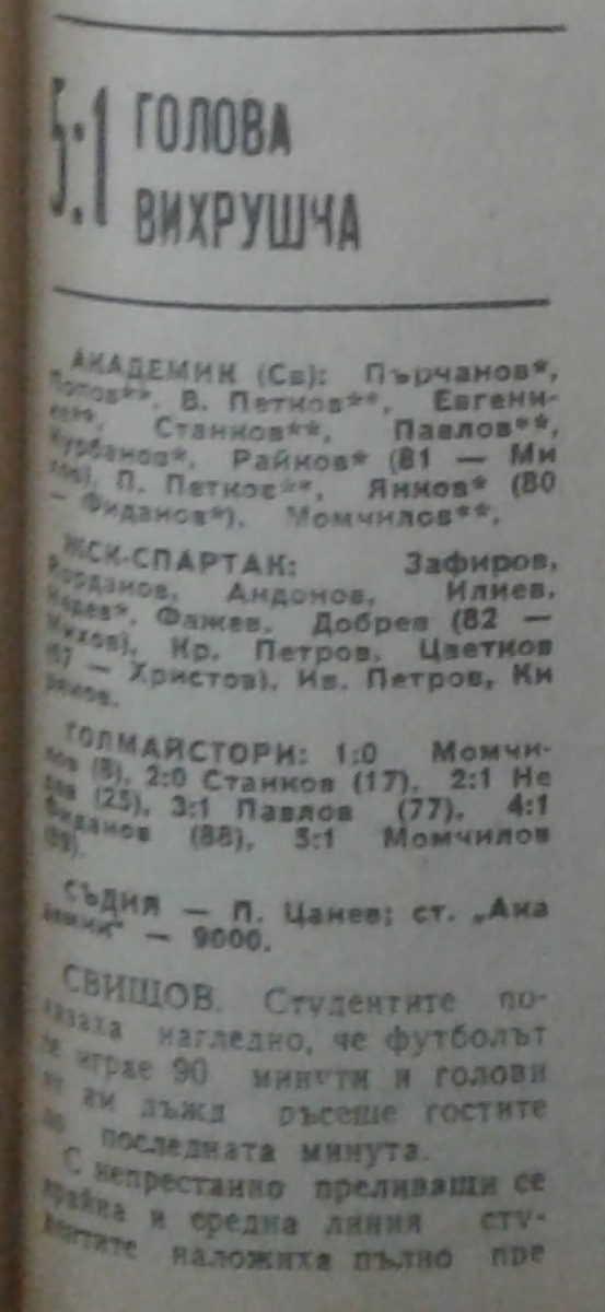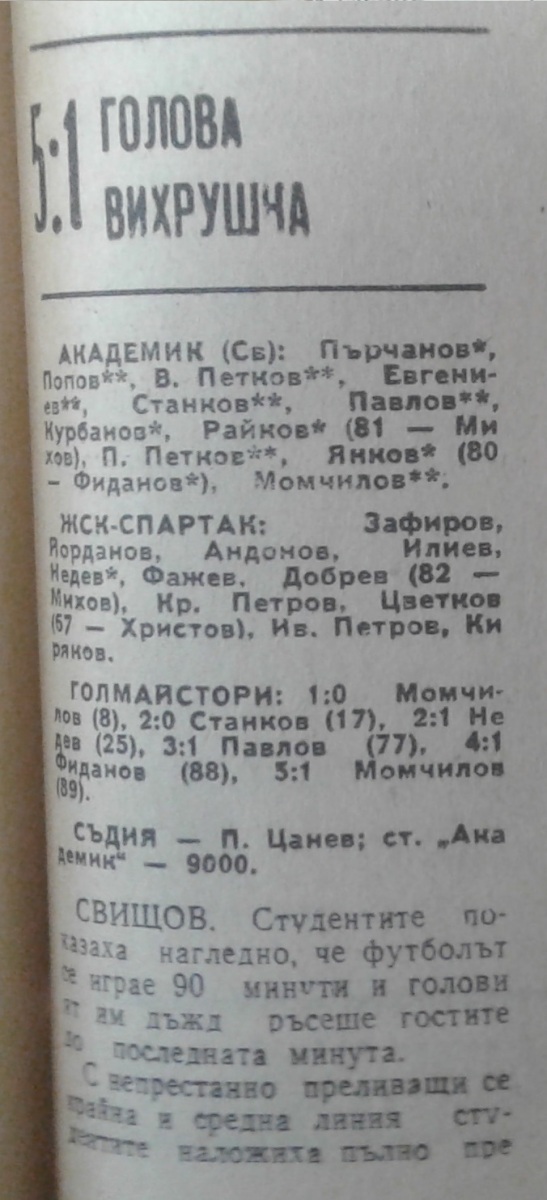 «Академик» Свиштов - «ЖСК-Спартак» Варна - 5:1