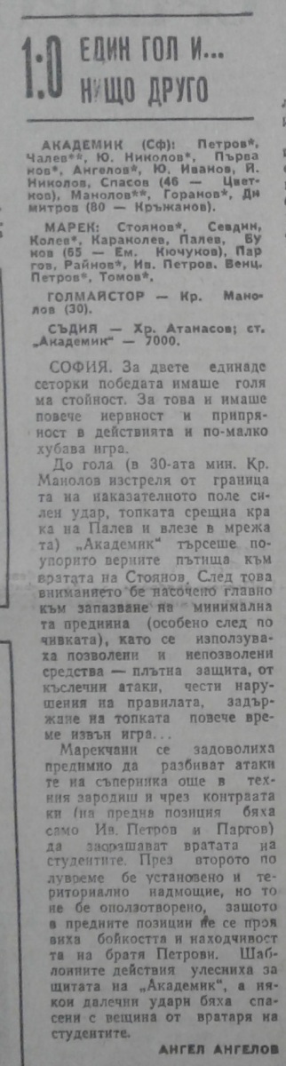 «Академик» София - «Марек» Станке-Димитров - 1:0
