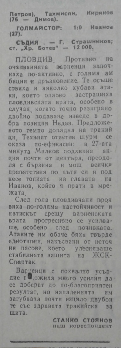 «Тракия» Пловдив - «ЖСК-Спартак» Варна - 1:0
