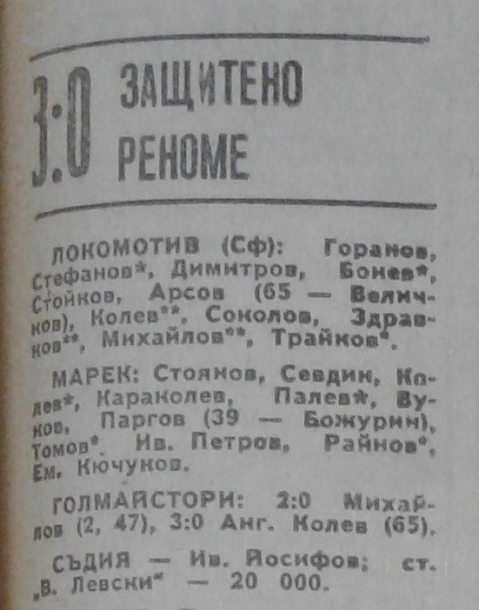 «Локомотив» София - «Марек» Станке-Димитров - 3:0