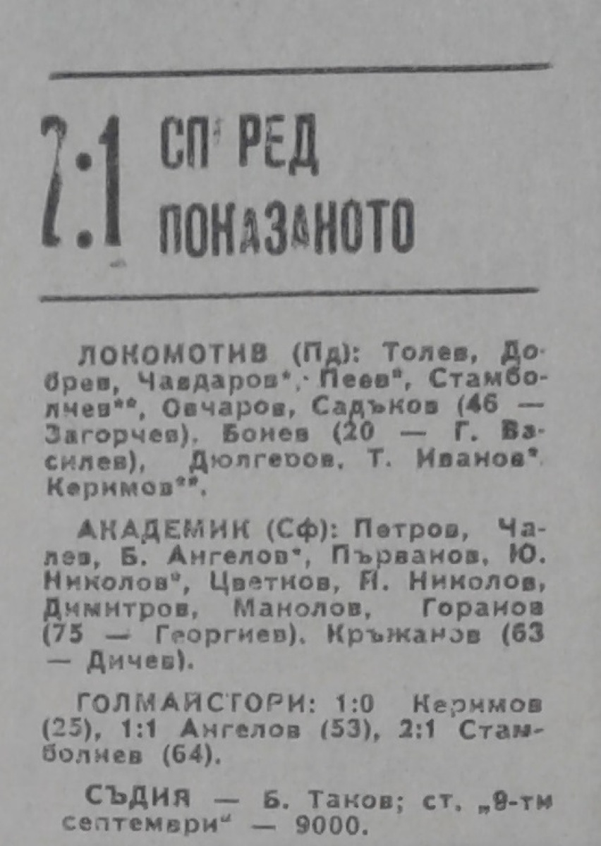 «Локомотив» Пловдив - «Академик» София - 2:1