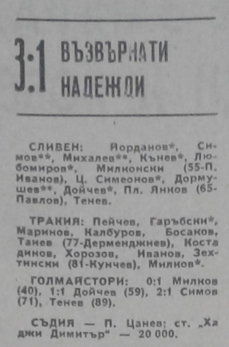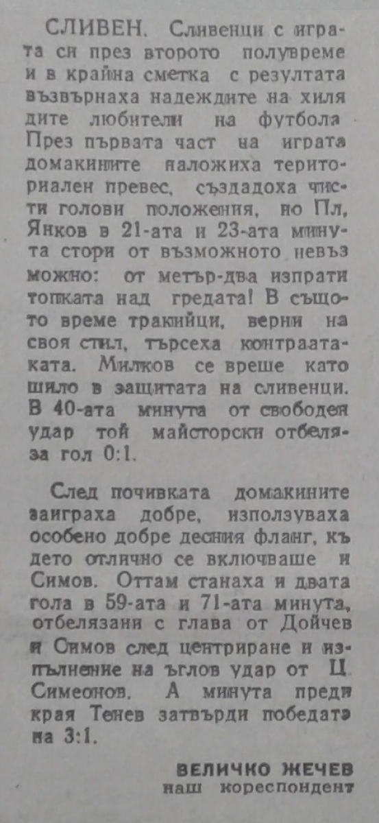 АФД Сливен - «Тракия» Пловдив - 3:1
