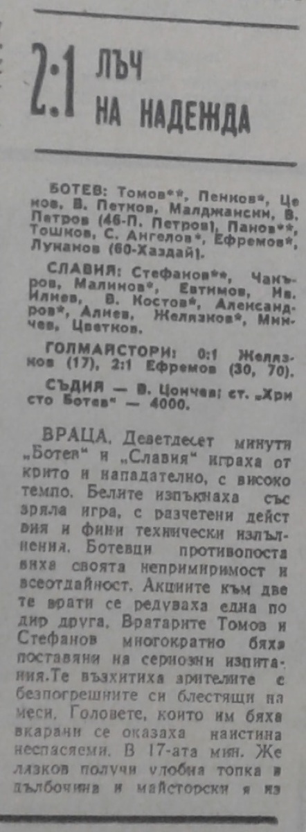 «Ботев» Враца - «Славия» София - 2:1