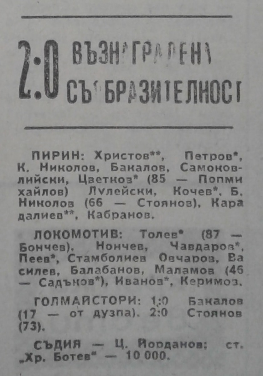 «Пирин» Благоевград - «Локомотив» Пловдив - 2:0
