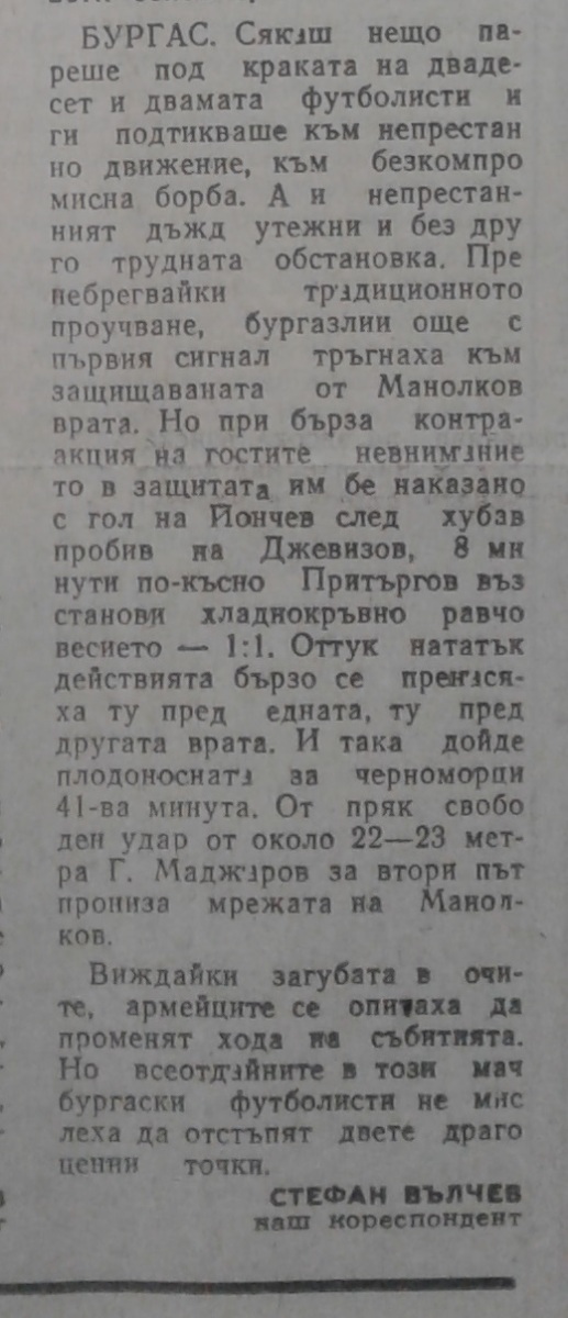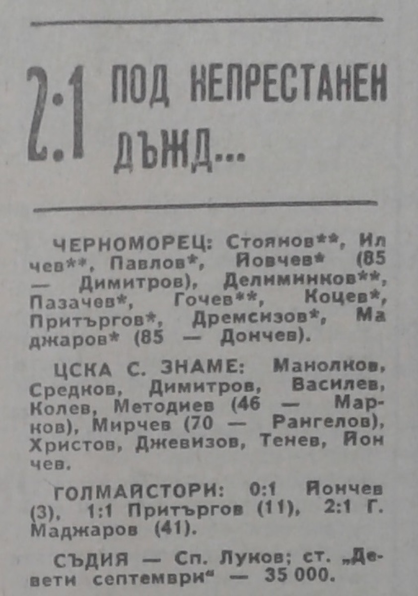 «Черноморец» Бургас - «ЦСКА Септемврийско Знаме» София - 2:1