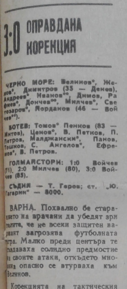 «Черно море» Варна - «Ботев» Враца - 3:0