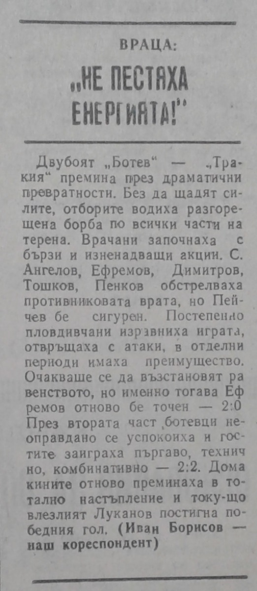 «Ботев» Враца - «Тракия» Пловдив - 3:2