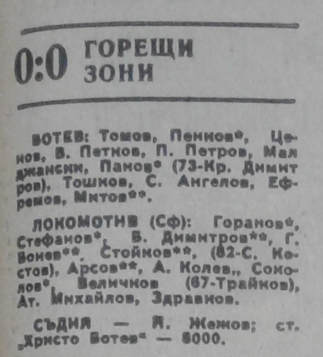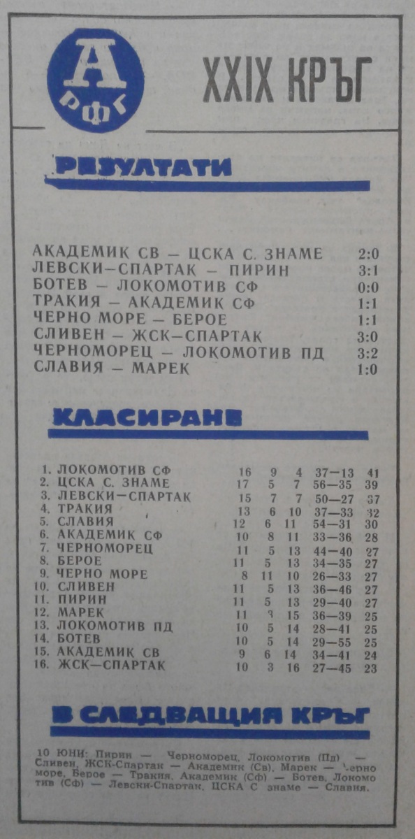 Борислав Димитров (Лок. София) провёл свой 150-й матч в А РФГ (1972/73 - 8 игр, 1973/74 - 29, 1974/75 - 30, 1975/76 - 29, 1976/77 - 26, 1977/78 - 28)