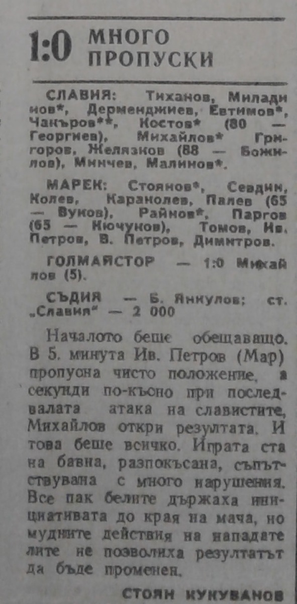 «Славия» София - «Марек» Станке-Димитров - 1:0