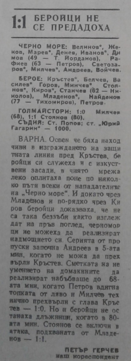«Черно море» Варна - «Берое» Стара-Загора - 1:1